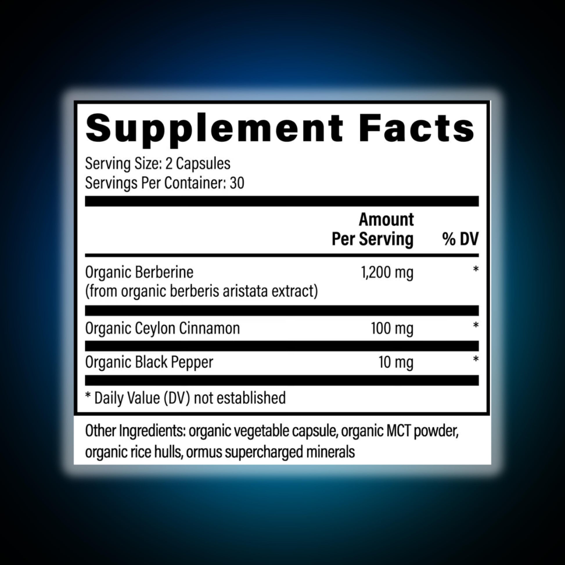 Siglos de tradición e investigaciones modernas muestran que la berberina, un compuesto alcaloide de origen vegetal, puede ayudarle a mantener un peso saludable, estimular el metabolismo, mejorar la respuesta de la insulina y reducir el colesterol. Nuestra potente fórmula utiliza pimienta negra orgánica y canela para maximizar el poder de la berberina, para que pueda alcanzar más fácilmente sus objetivos de salud y bienestar.