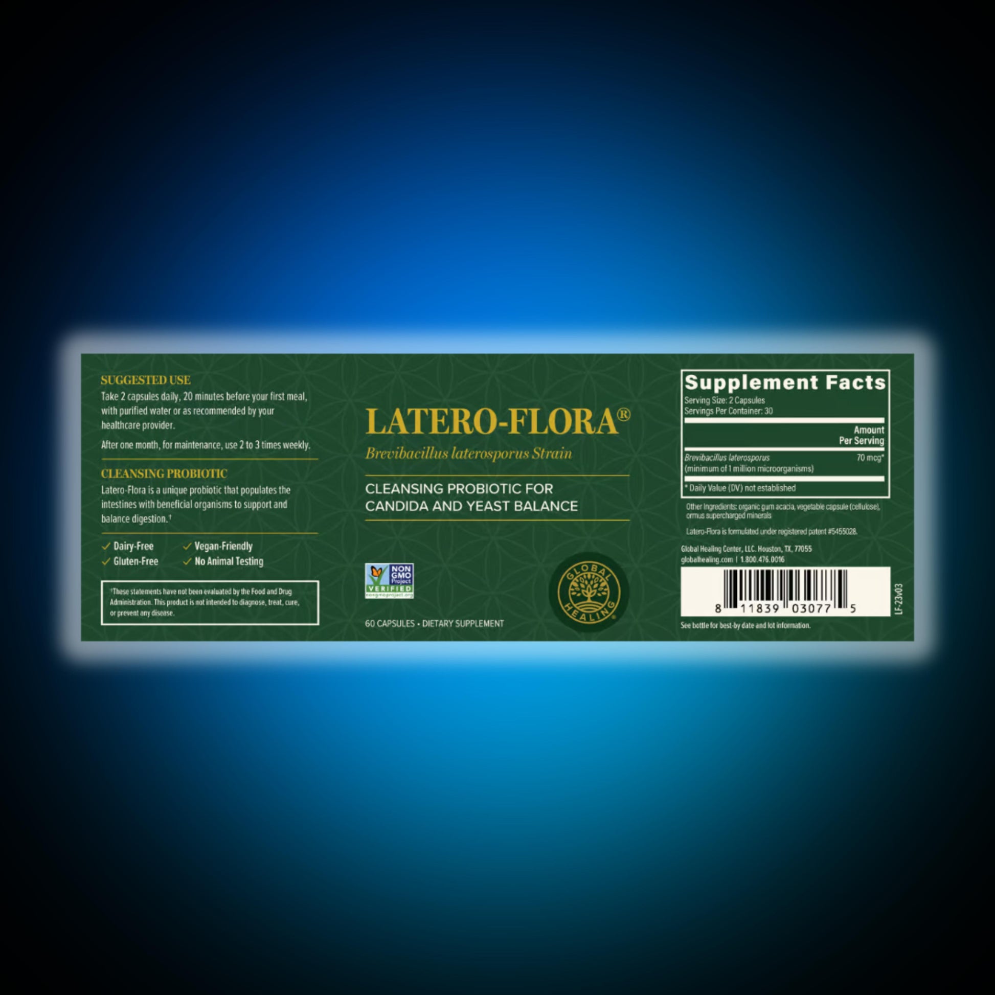 Latero-Flora™ aprovecha la cepa Brevibacillus laterosporus (BOD), un probiótico poco común que limpia la Candida y repone las bacterias beneficiosas. Mejorado con goma de acacia orgánica, que promueve el crecimiento de bacterias buenas. Cada porción proporciona un millón de bacterias portadoras de esporas para una potencia inigualable. Opte por calidad y eficacia superiores con Latero-Flora™.