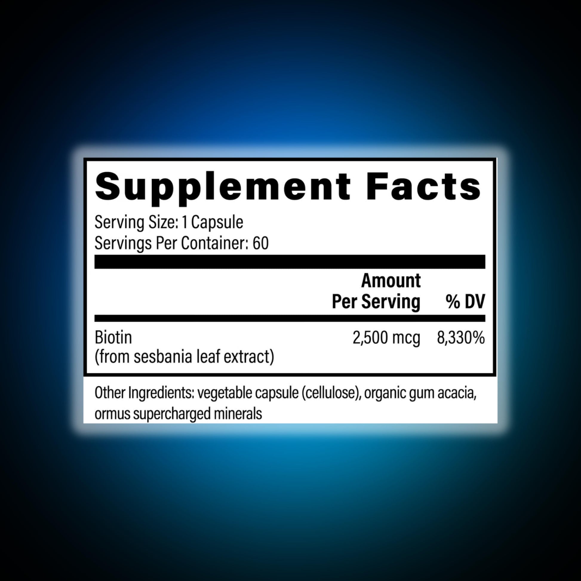 Experimente el poder del secreto de belleza de la naturaleza con nuestra biotina premium (2500 mcg por porción). También conocida como vitamina B7, vitamina H y coenzima R, esta vitamina esencial actúa a nivel celular para promover un cabello sano, uñas fuertes y un metabolismo óptimo. Nuestra biotina se extrae meticulosamente de Sesbania orgánica, una planta conocida por su excepcional perfil de nutrientes y sostenibilidad. Pero no nos detenemos ahí: también incluimos cofactores y conutrientes naturales para mejorar la biodisponibilidad de la biotina. Esto significa que su cuerpo puede absorber y utilizar mejor la vitamina esencial para obtener mejores resultados. Libere todo su potencial de belleza con esta experiencia superior y lujosa.