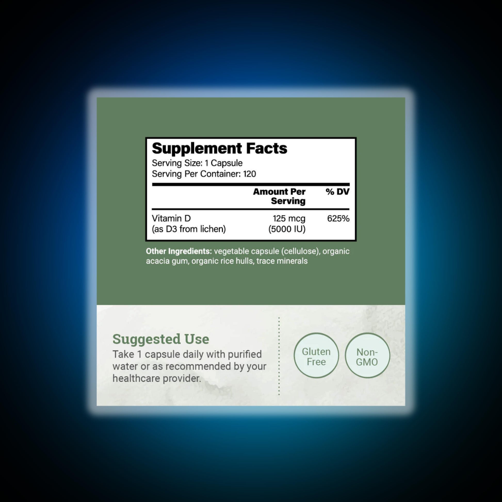 Refuerzo inmunitario: Nuestra vitamina D esencial de 5000 UI está formulada para una fácil biodisponibilidad y ayuda a tu cuerpo a evitar niveles bajos de vitamina D por falta de luz solar.